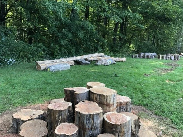 Nature-based play space along the existing woodland edge, using only locally sourced trees and boulders, Rubus designed and installed this play environment for middle school kids to meet, chat, balance and engage with nature.